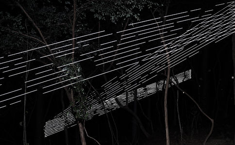 Light-year Transmission is a site-specific interactive light installation located on an island in Qiandao Lake (千岛湖) in Chun'an, Zhejiang Province. The work is part of the Qiandao Lake 2024 Light and Shadow Biennale. It consists of 2,000 meters of highly reflective thread arranged across a 28-meter span between trees along the island’s visitor path. The reflective, photosensitive thread is woven into a pattern that encodes a message containing ancient Chinese poems, which evokes the experience of life as it was a thousand years ago in the Chun'an area.